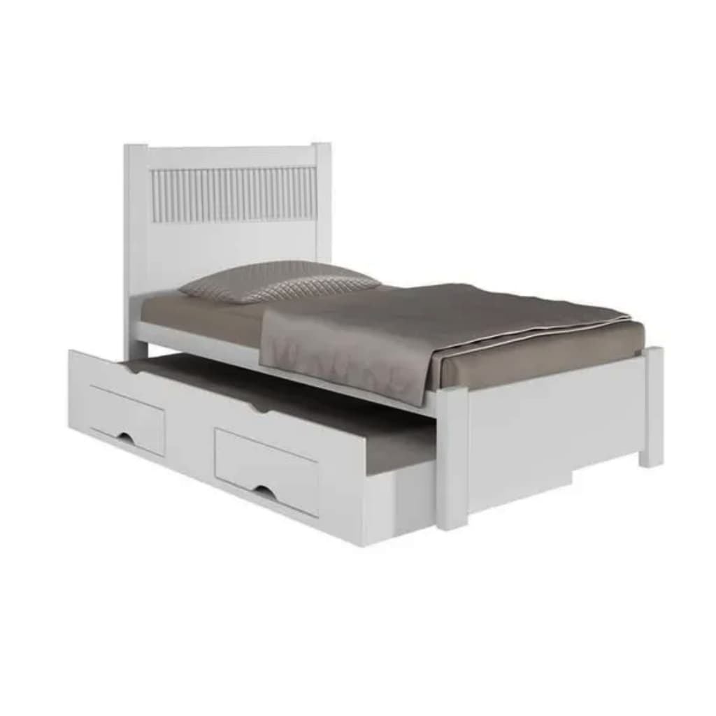 .Cama Solteiro em Mdf Com Auxilar 2 Gavetas – Cor Branca