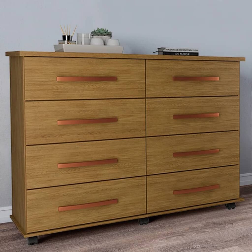 Cômoda 8 Gavetas Com Rodinhas – Cor Mel