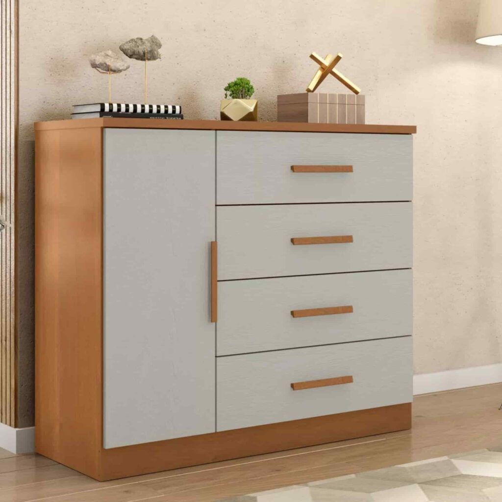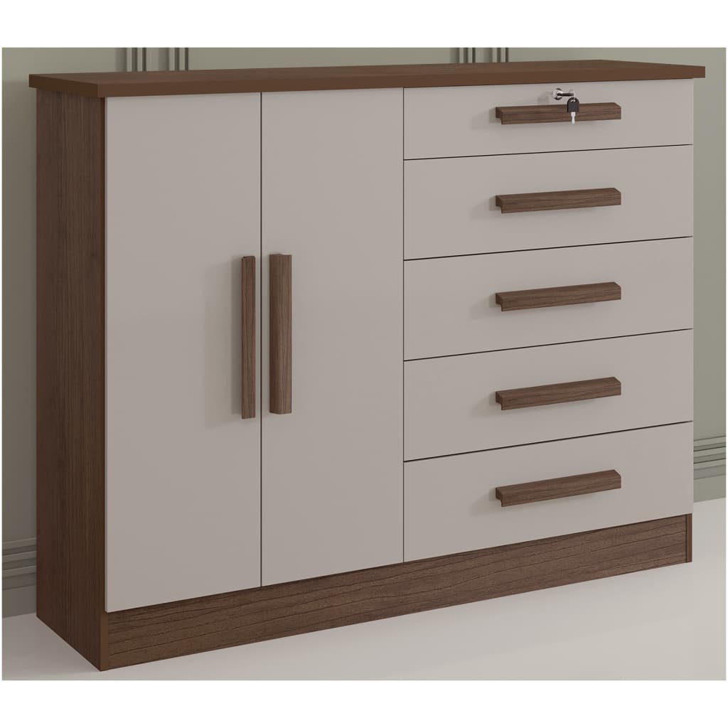 Cômoda 5 Gavetas e 1 Porta – Cor Cinamomo Off White