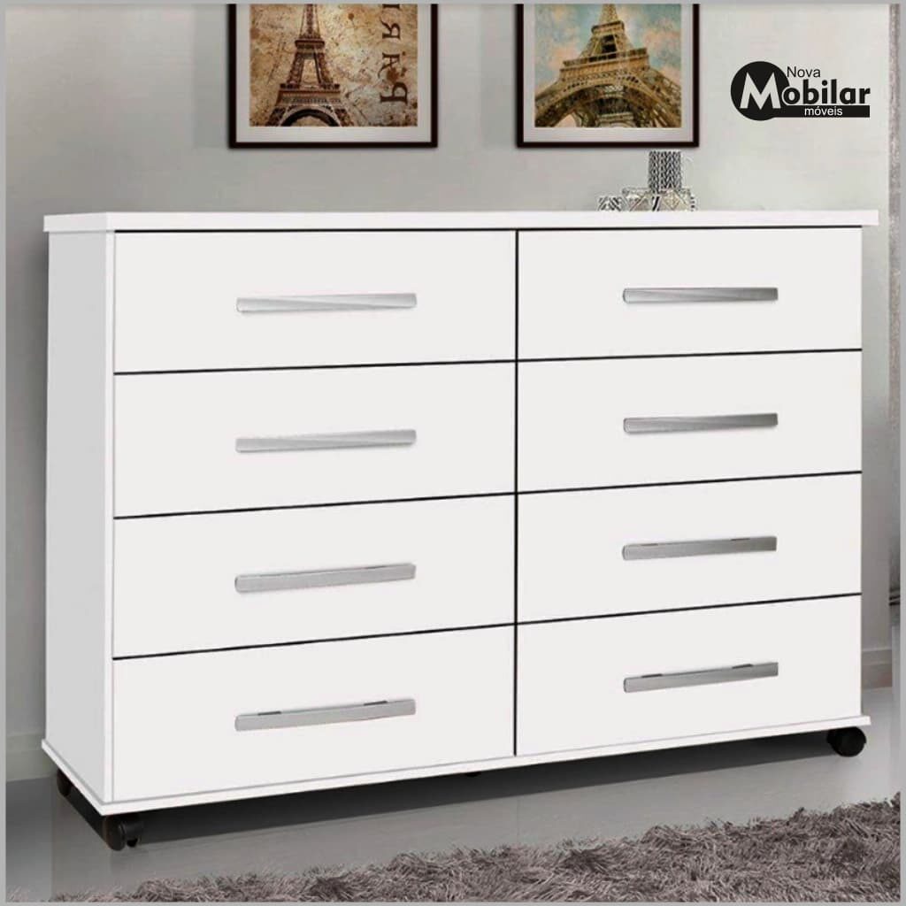Cômoda 8 Gavetas Com Rodinhas – Cor Branca