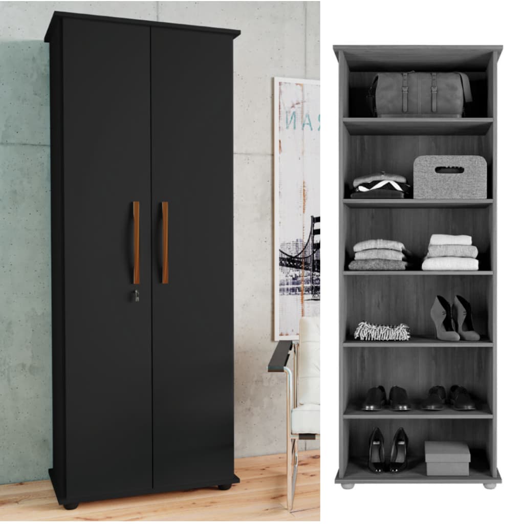 Sapateira Multiuso Com Chave – 6 Prateleiras – Cor Preto
