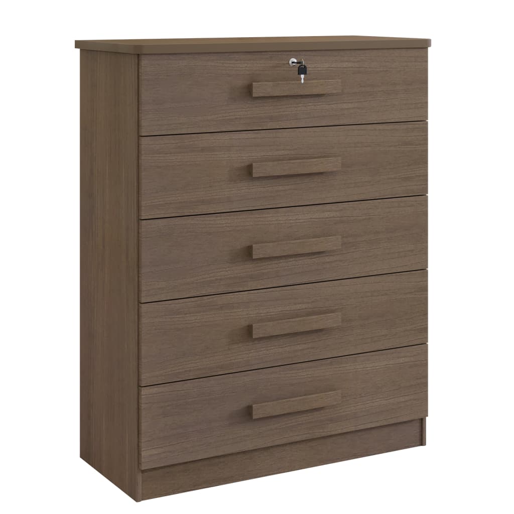 Cômoda 5 Gavetas Cor Cinamomo – 1 Gaveta Com Chave