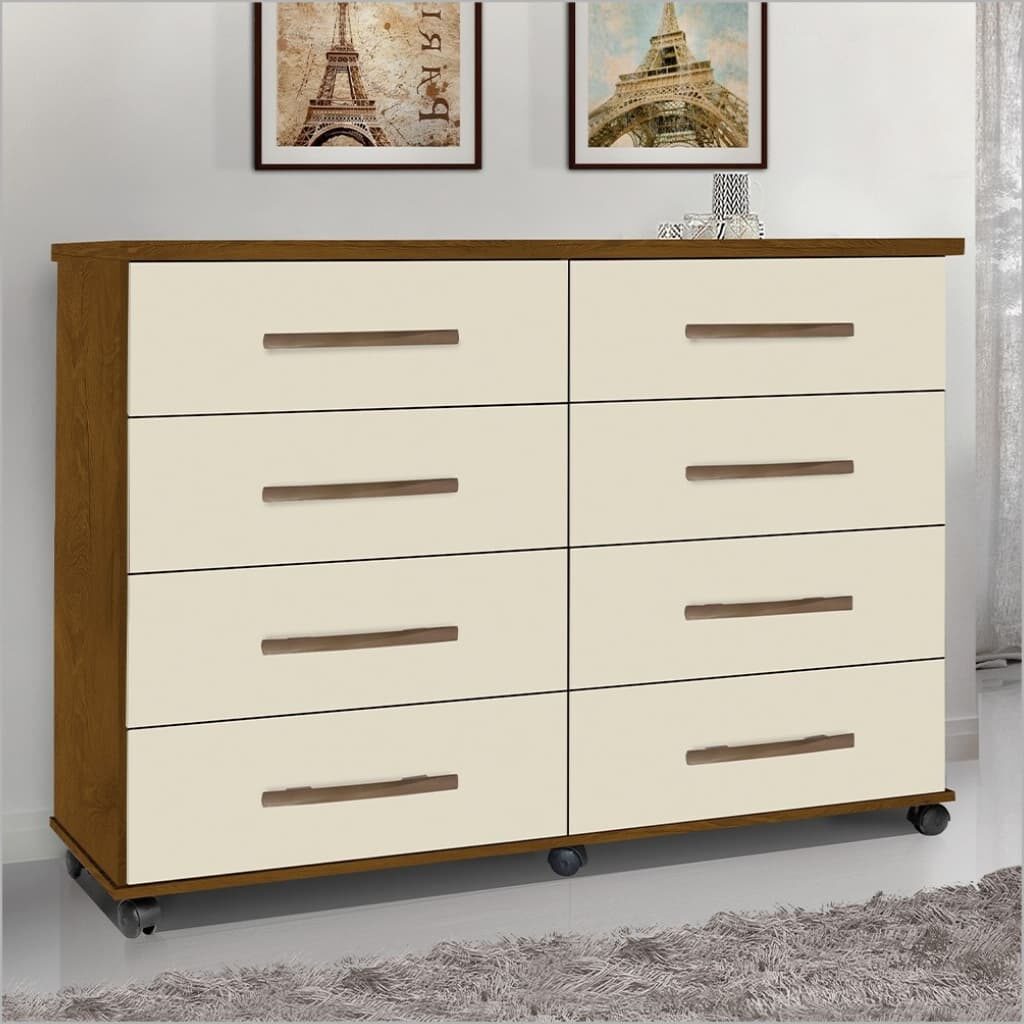 Cômoda 8 Gavetas Com Rodinhas – Cor Mel Pérola