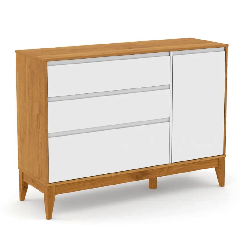 Cômoda 3 Gavetas e 1 Porta – Pés e Rodapés em Madeira Maciça – Cor Branca