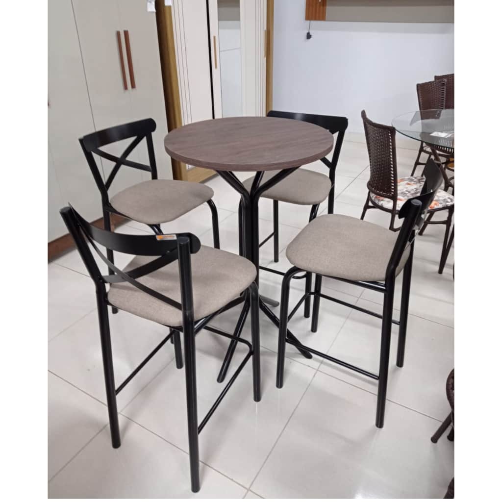 Bistrô Palmas Com 4 Banquetas Paris – Bistrô e Banquetas no Metal Preto – Tampo MDP