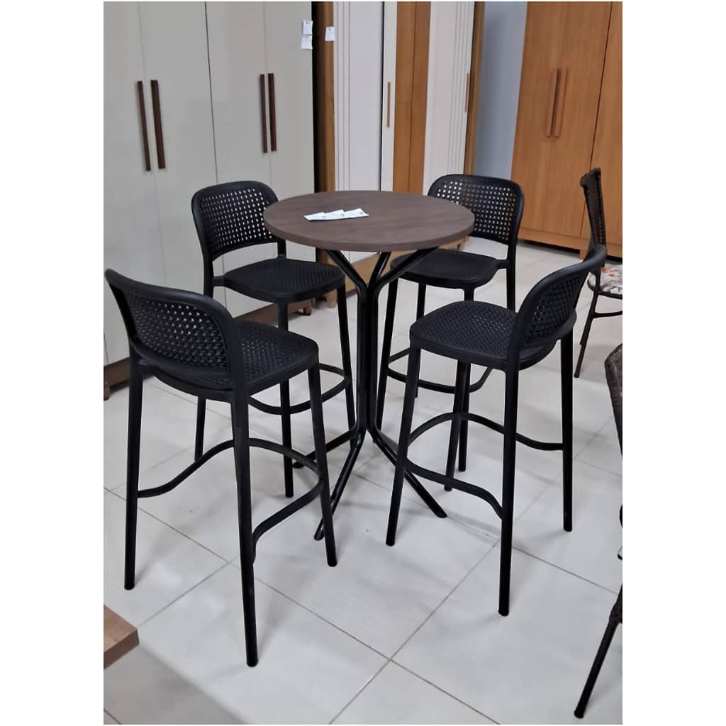 Bistrô Palmas Com 4 Banquetas Amis no Polipropileno Preto – Bistrô no Metal Preto – Tampo MDP
