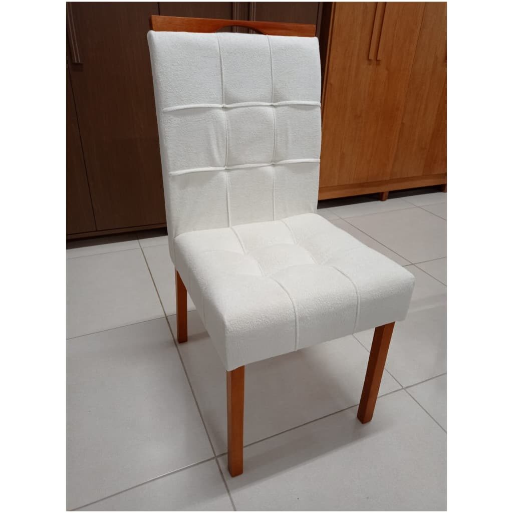 Cadeira Estofada Sophia – Pés e Puxador em Madeira – Tecido Bouclê Branco