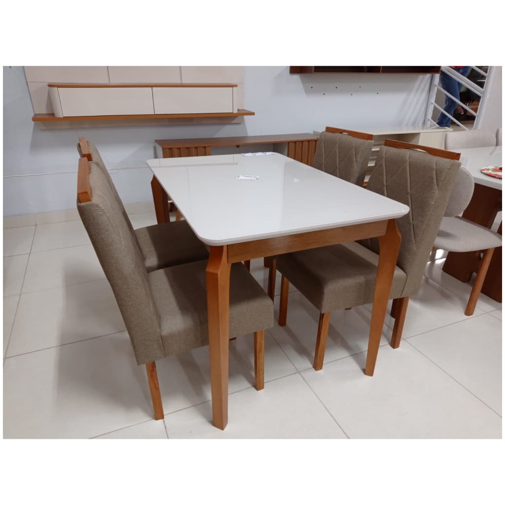 Mesa de Jantar Avulsa 1,70m Off White Com Vidro Temperado
