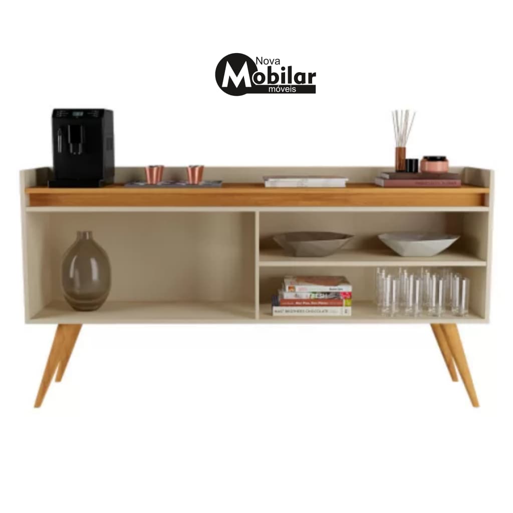 Aparador Buffet 4 Portas – Cor Mel – Pés de Madeira