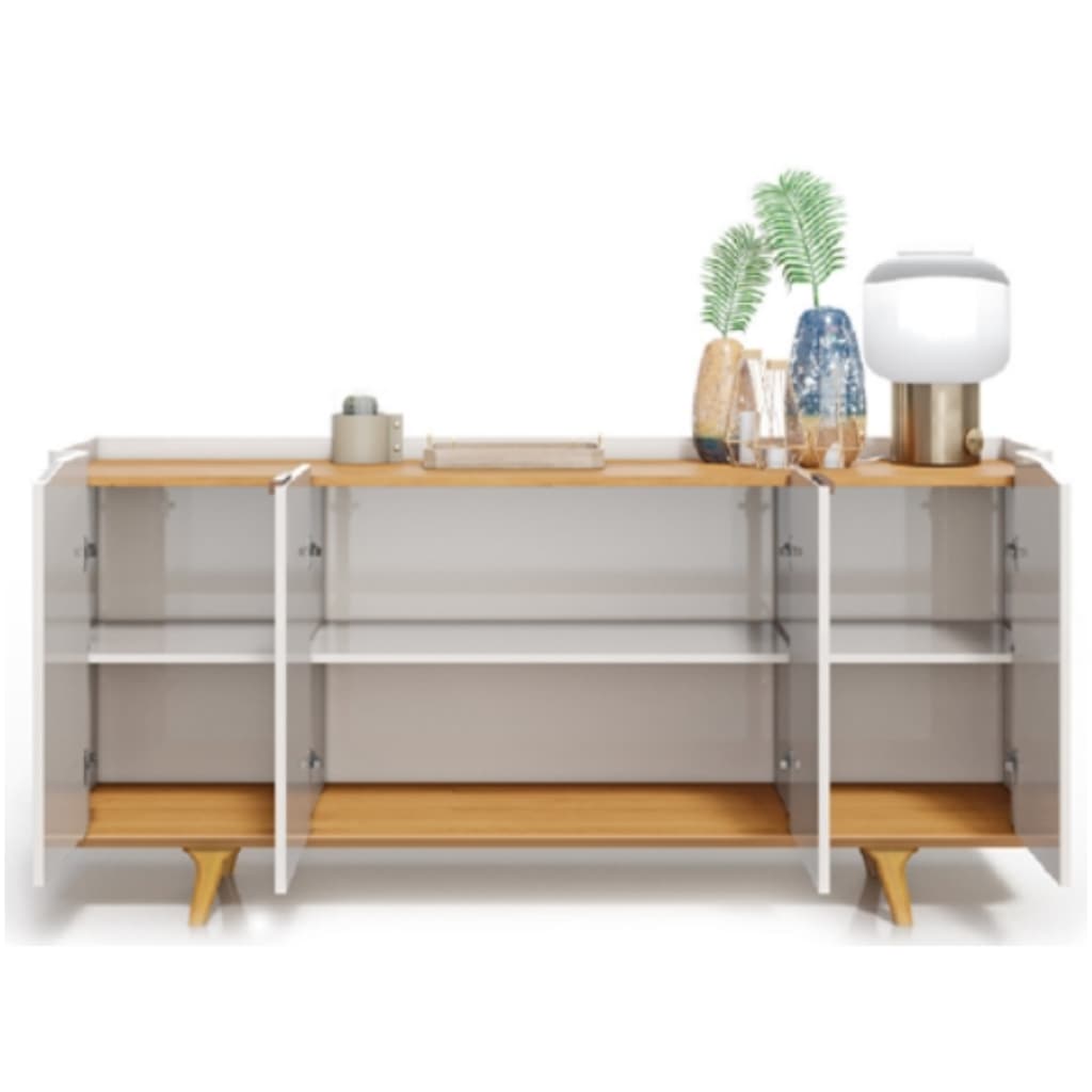 Aparador Buffet 4 Portas – Cantos Arredondados – 1.80m Largura – Cor Nature Off White – Pés de Madeira